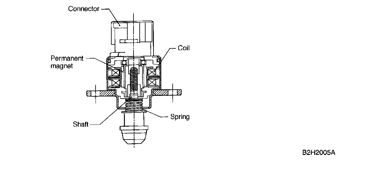 - The idle air control solenoid valve is a "stepping motor" type solenoid valve which consists of coils, shaft, permanent magnet, spring and housing. The housing is integral with the throttle body.