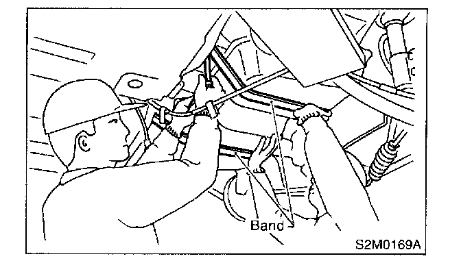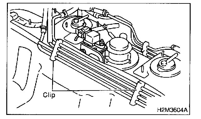 6. Move clip, and disconnect pressure hose from fuel tank.