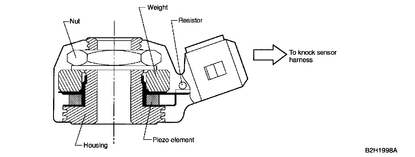 - It consists of a piezo-electric element, weight, and case. If knocking occurs in the engine, the weight in the case moves causing the piezo-electric element to generate a voltage.