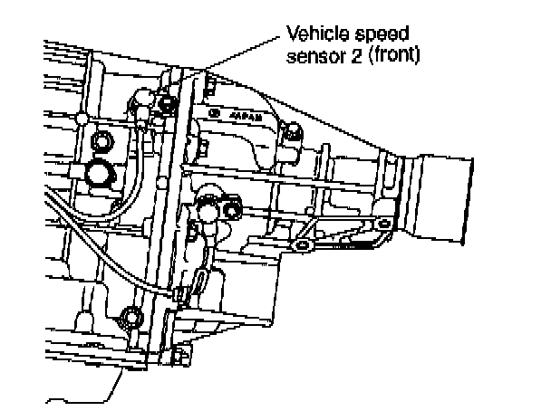 The vehicle speed sensor (output shaft rotation sensor) is mounted to the transmission case (from the outside of the case). It detects the front wheel speed and sends sine wave signals (16 pulses per rotation) to TCM.