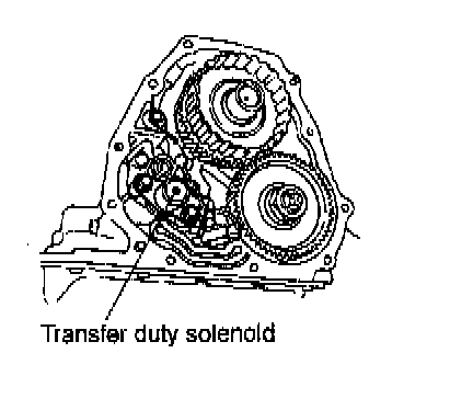 This solenoid is mounted to the transfer control valve on the rear end of transmission case, and its duty ratio is controlled by the signal sent from TCM. It then controls the transfer control valve for controlling the transfer clutch hydraulic oil pressure.