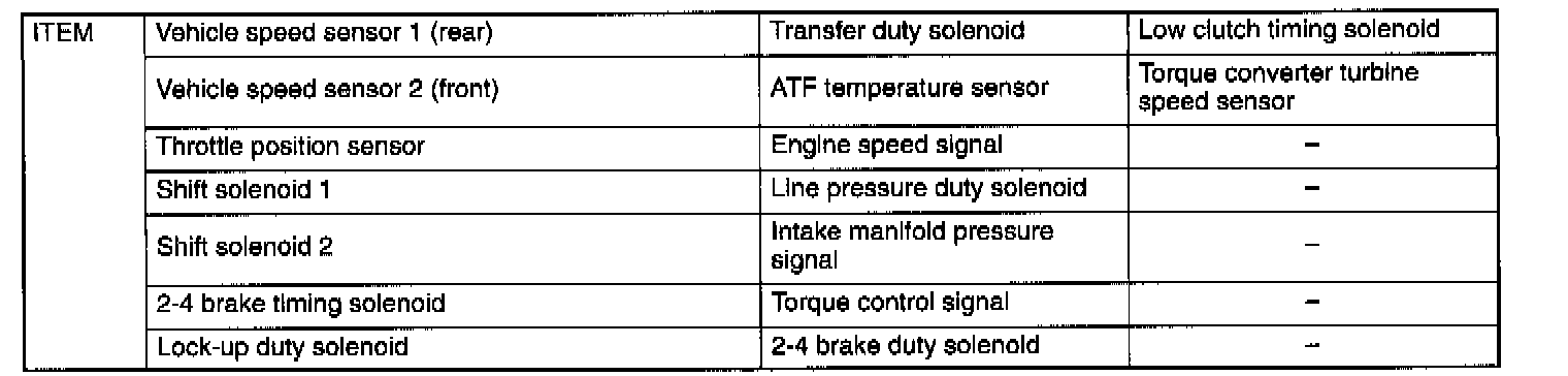 The on-board diagnostics system is capable of detecting any trouble which has occurred in any of the following input and output signal systems.