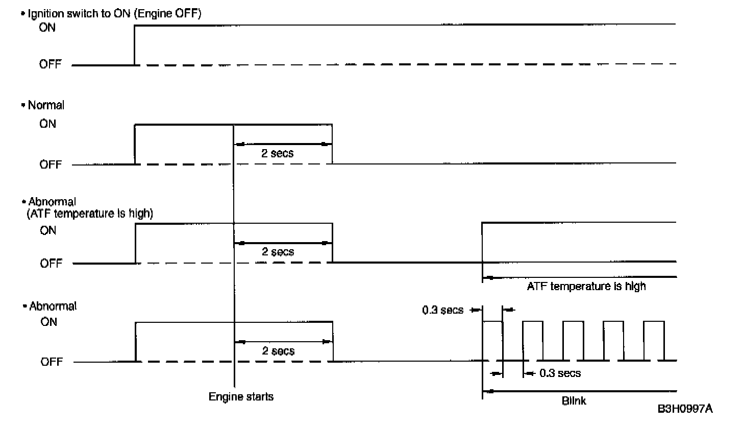 The results of on-board diagnostics are displayed by flashing ATF Temperature indicator light.