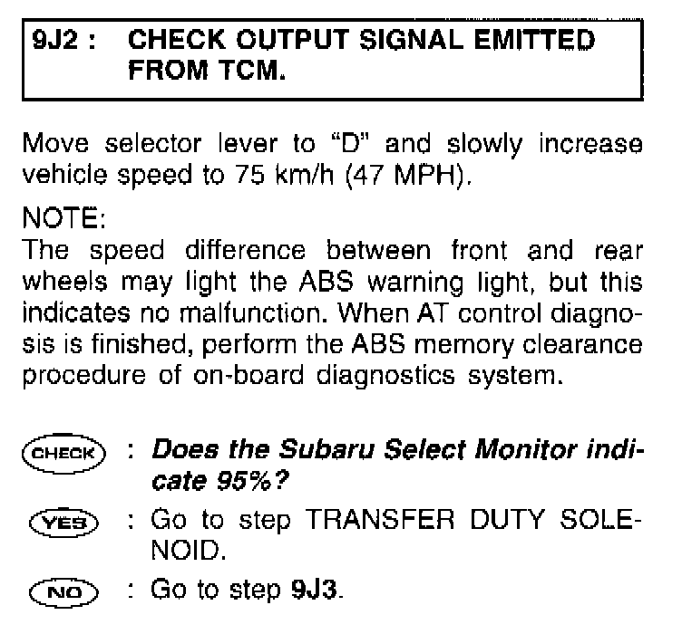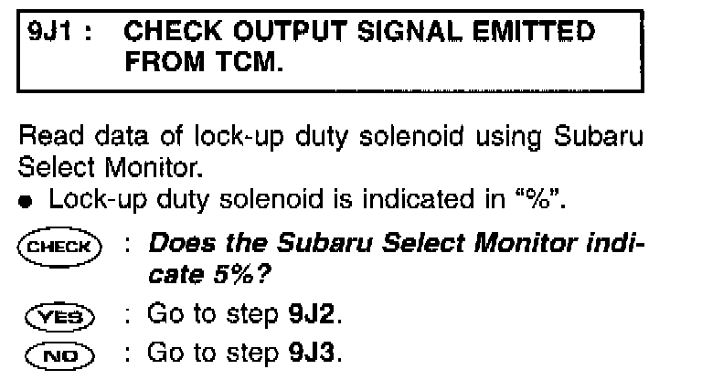 9J1: CHECK OUTPUT SIGNAL EMITTED FROM TCM.