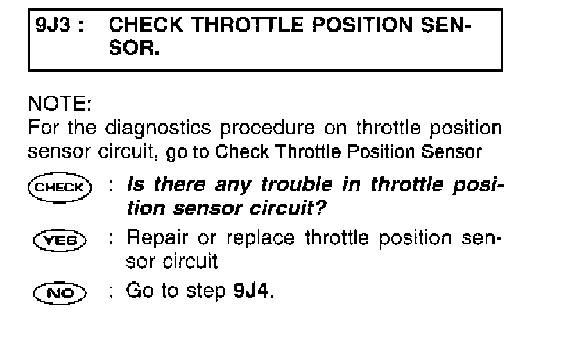9J3: CHECK THROTTLE POSITION SENSOR.