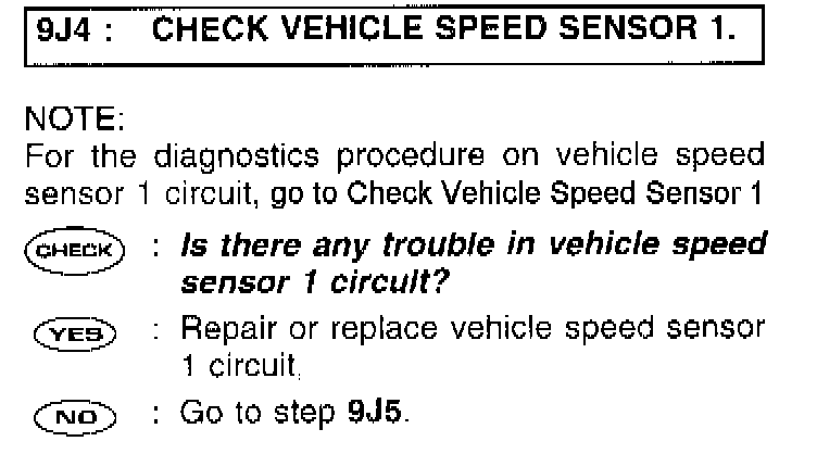 9J4: CHECK VEHICLE SPEED SENSOR 1.