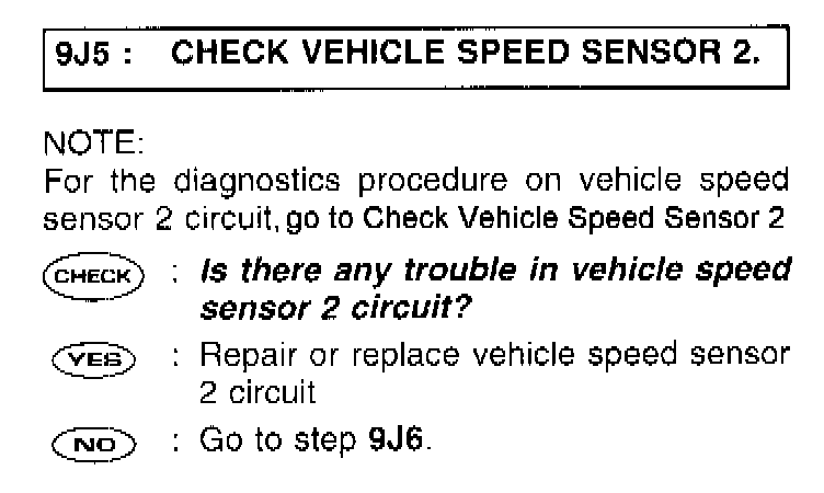 9J5: CHECK VEHICLE SPEED SENSOR 2.