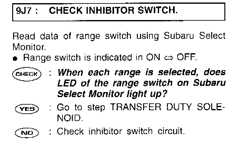 9J7: CHECK INHIBITOR SWITCH.