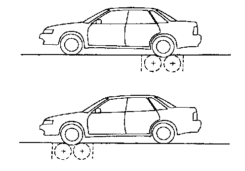3. Set the front wheels or rear wheels on the brake tester and set the select lever's position at "neutral".