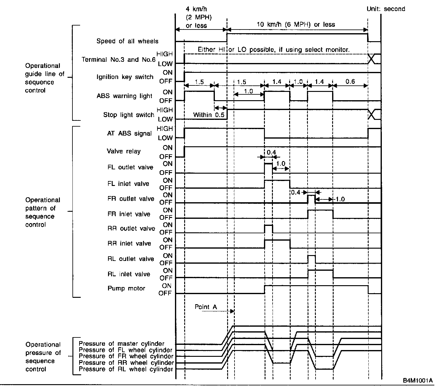 - In the event of any trouble, the sequence control may not be operative. In such a case, activate the sequence control, referring to "OPERATIONAL GUIDELINES OF THE ABS SEQUENCE CONTROL WITH DIAGNOSIS CONNECTOR".