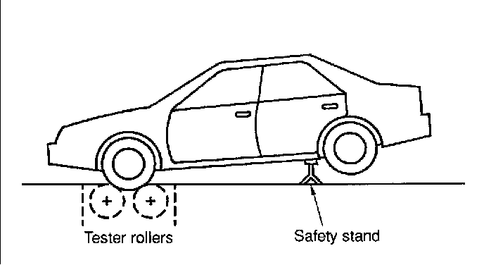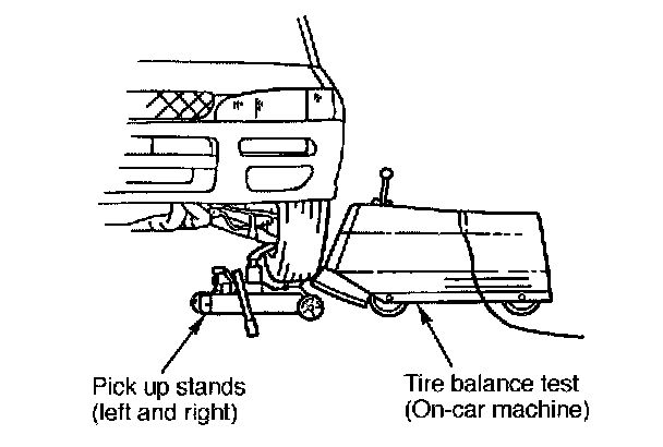 1. Raise vehicle so that left and right wheels to be checked clear the floor. Support wheels using pick-up stands.