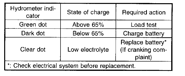4. CHECK HYDROMETER FOR STATE OF CHARGE