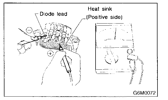 Check for continuity between the diode lead and the positive side heat sink. The positive diode is in good condition if continuity exists only in the direction from the diode lead to the heat sink.
