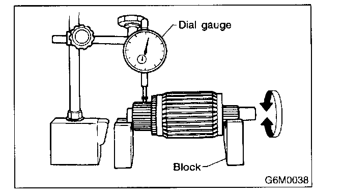 Check the commutator run-out and replace if it exceeds the limit.