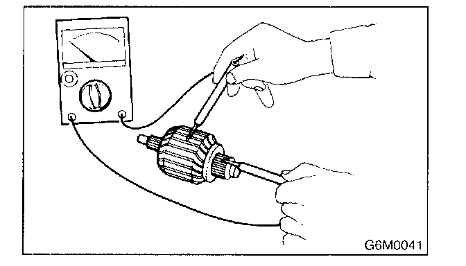 Using circuit tester, touch one probe to the commutator segment and the other to shaft. There should be no continuity. If there is a continuity, armature is grounded.