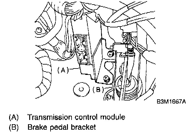 1. Install TCM to brake pedal bracket.