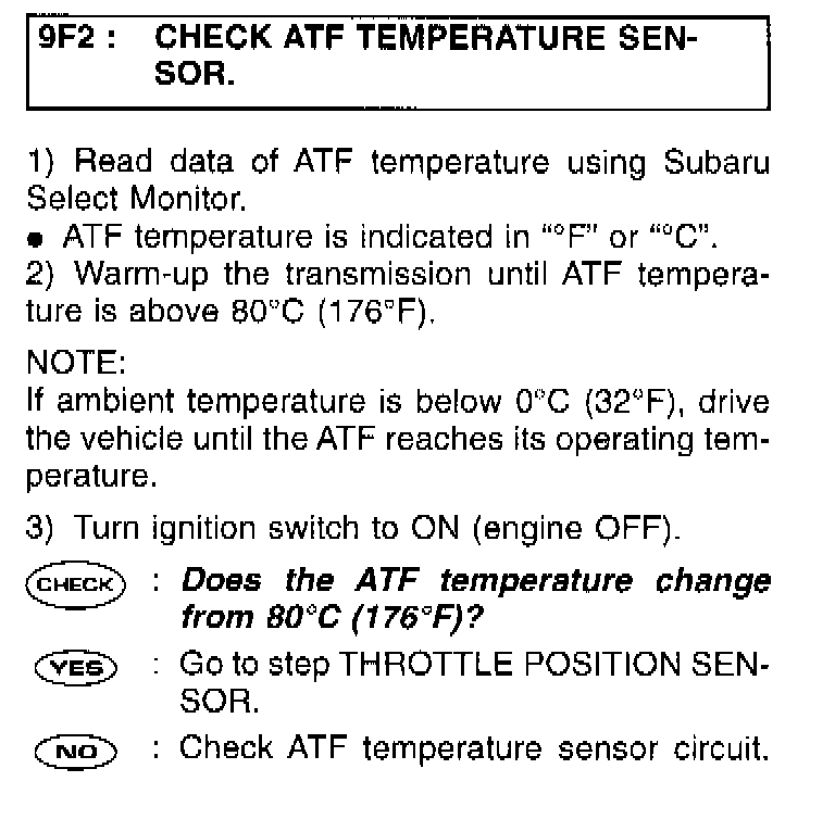 9F2: CHECK ATF TEMPERATURE SENSOR.