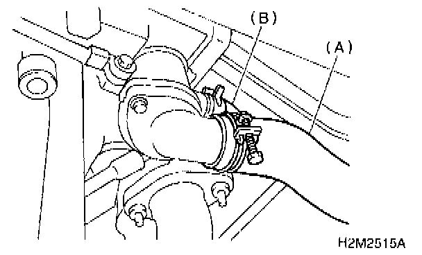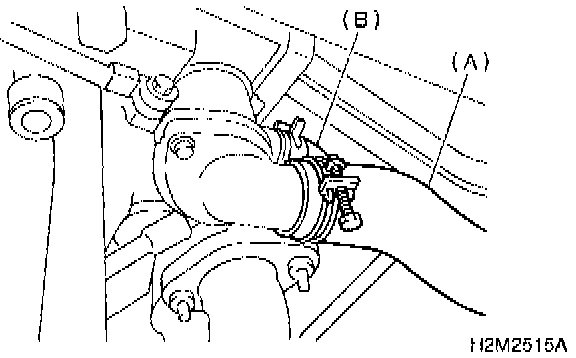 9) Connect radiator outlet hose (A) and water bypass hose (B). (AT vehicles)