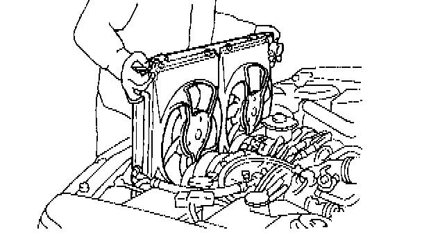 15) Lift radiator up and away from vehicle.