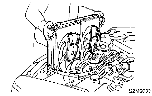 13) Remove radiator upper brackets.