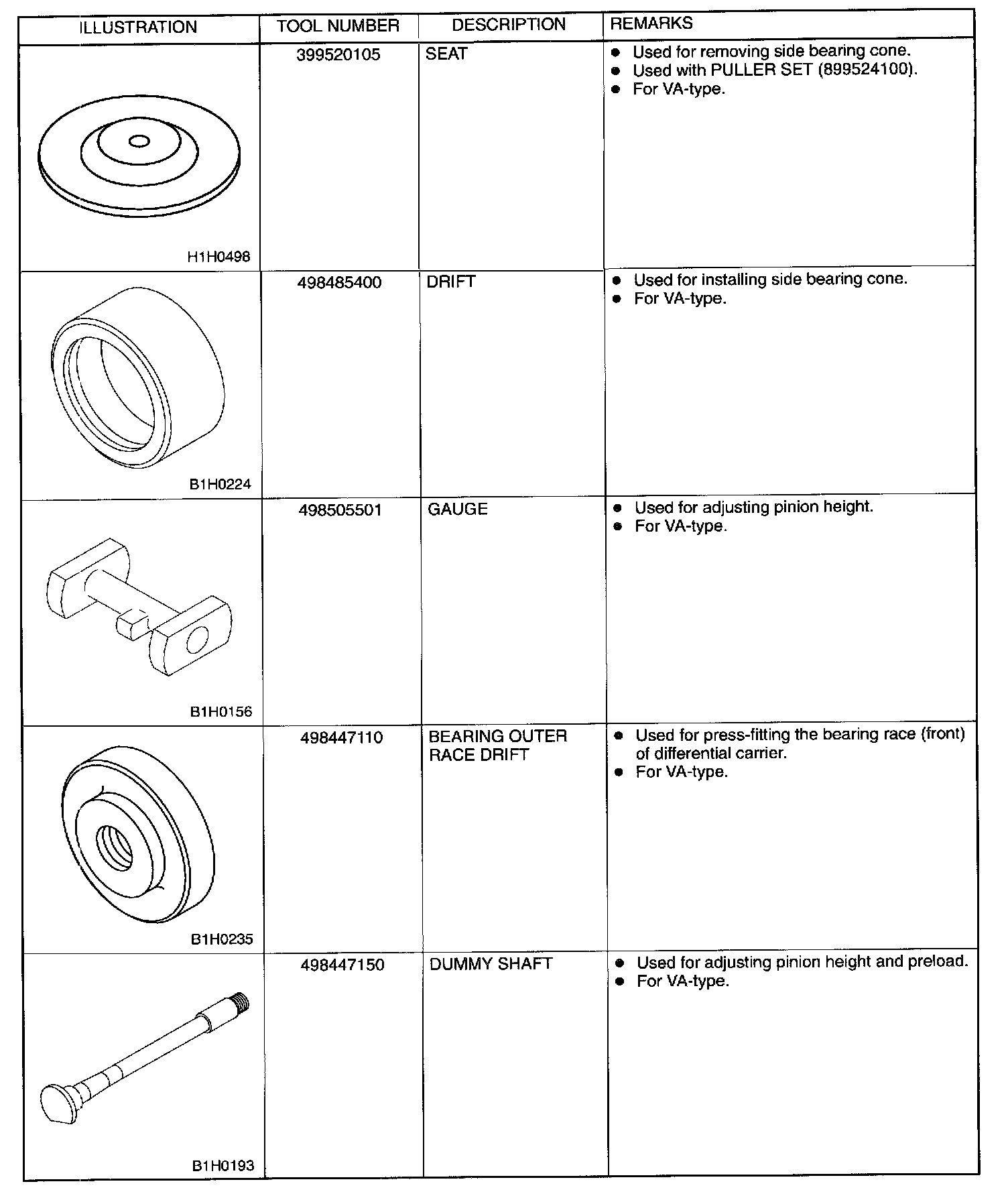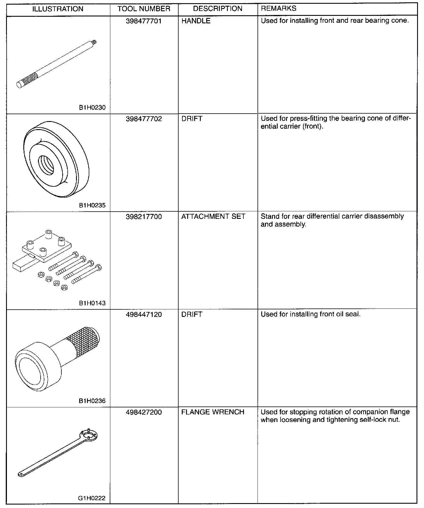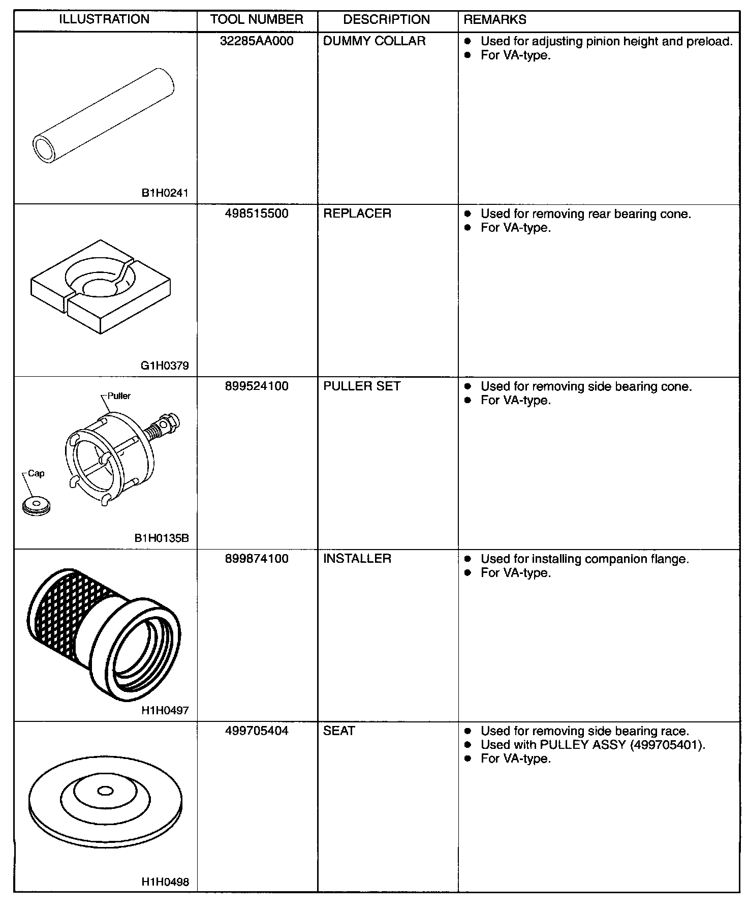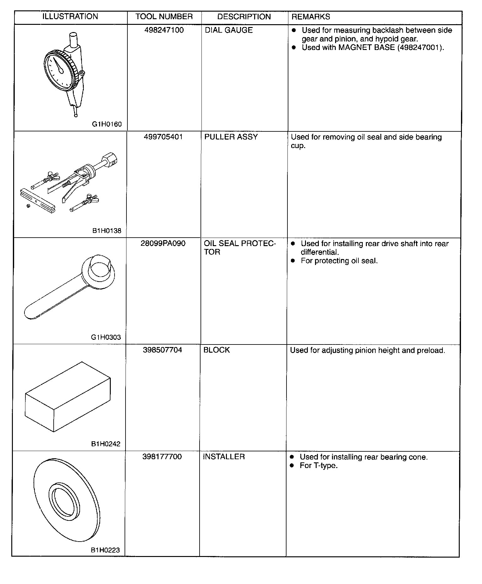Rear Differential Tools (AWD Models)