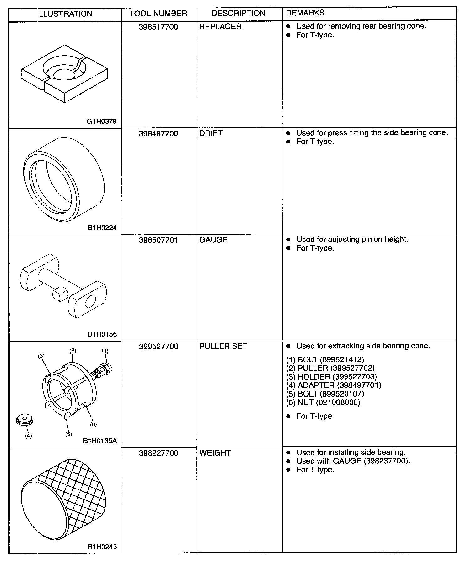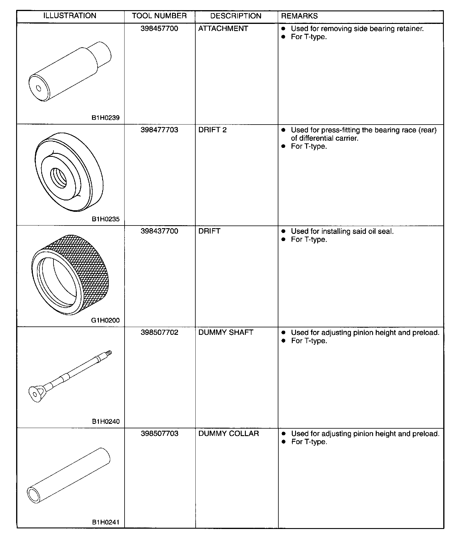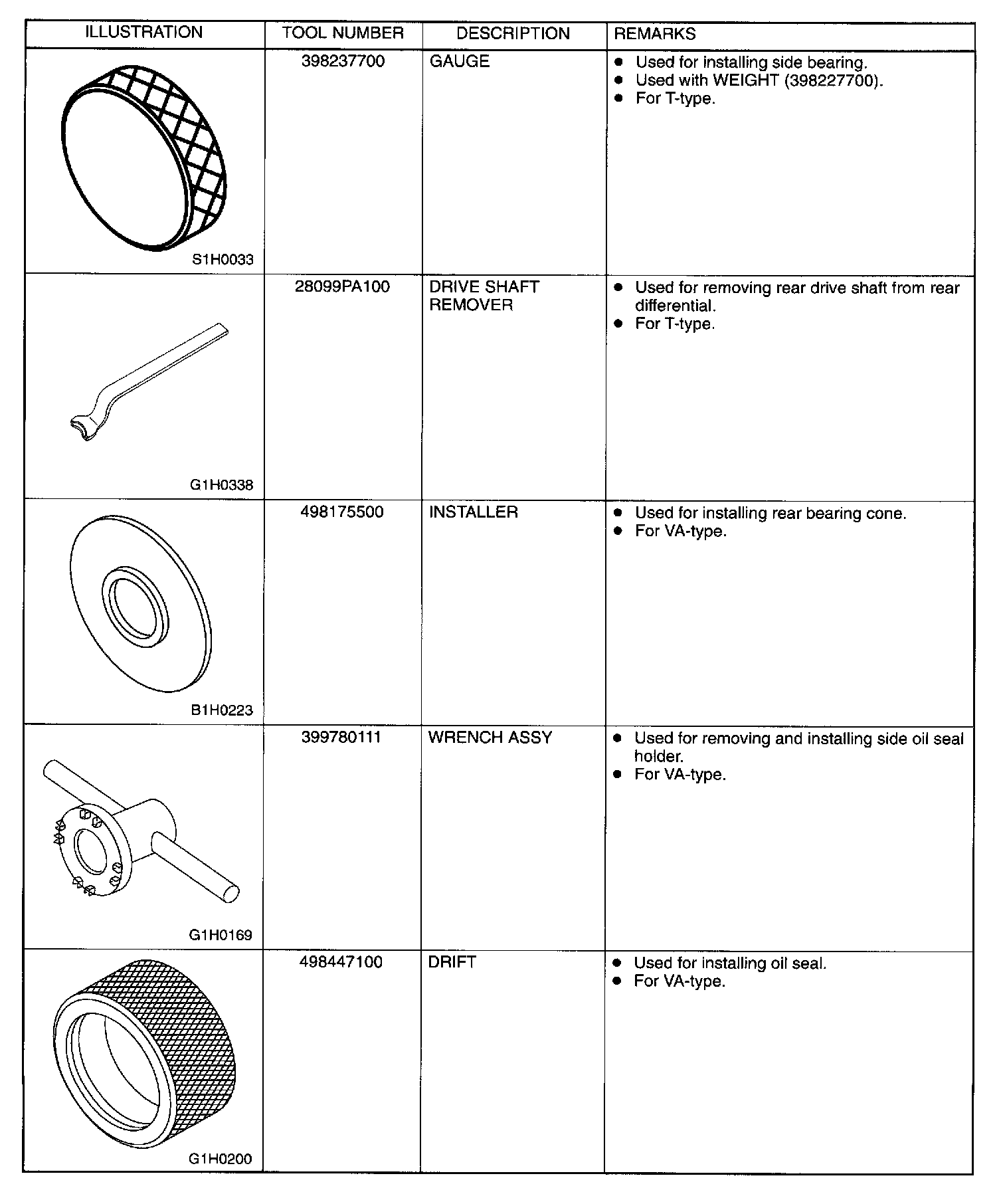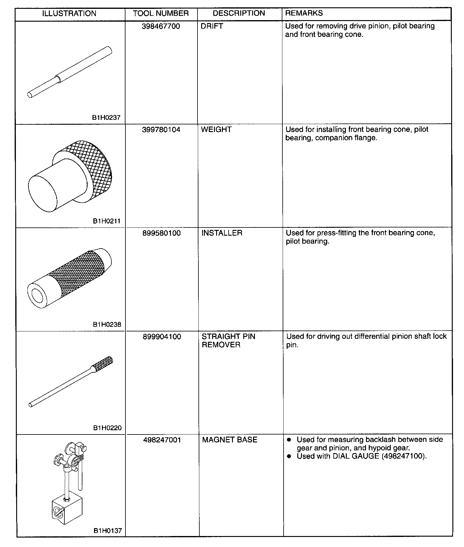Rear Differential Tools (AWD Models)