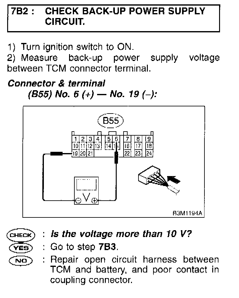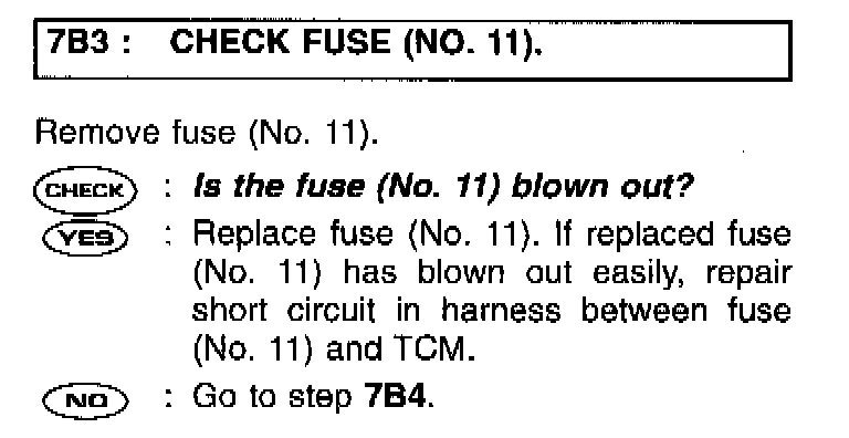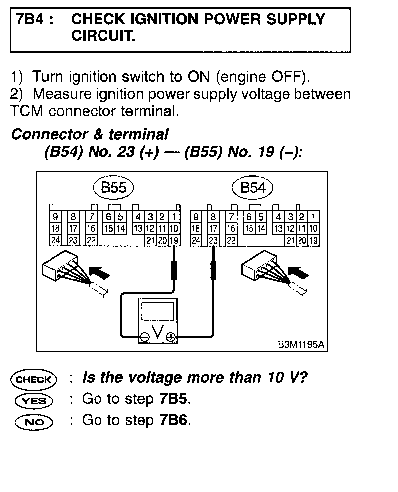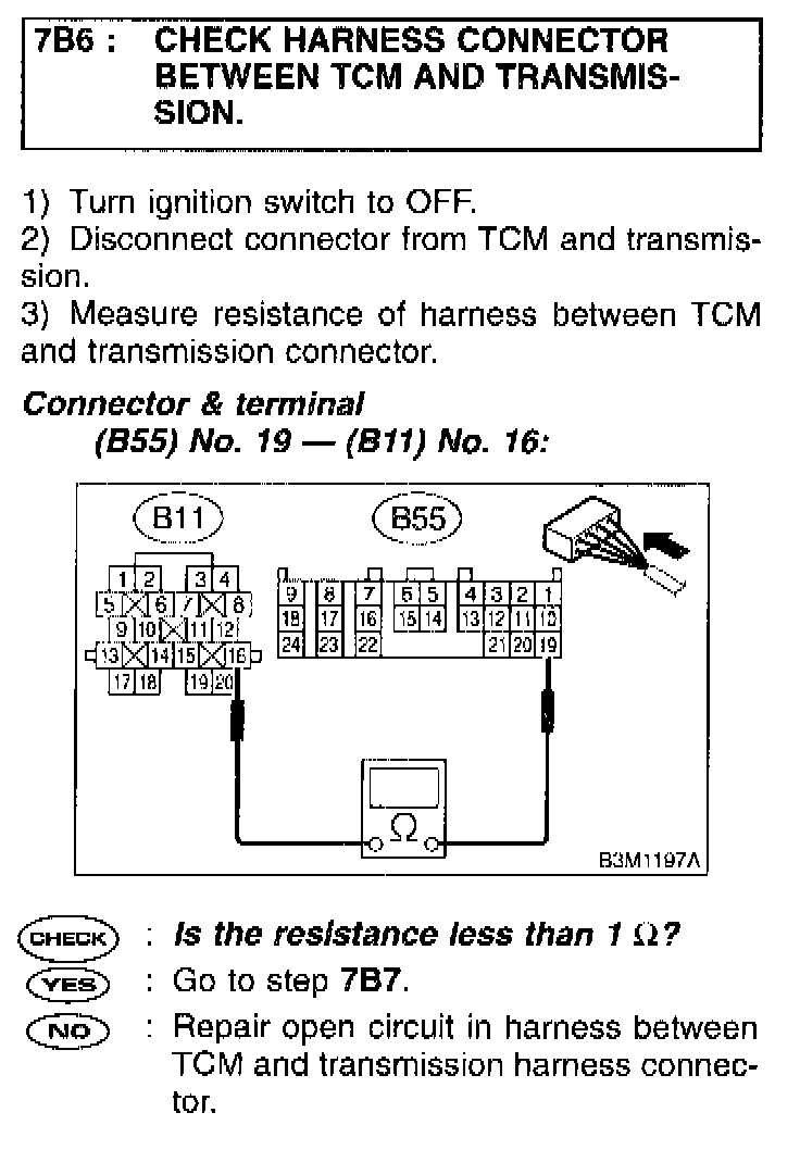 7B6: CHECK HARNESS CONNECTOR BETWEEN TCM AND TRANSMISSION.