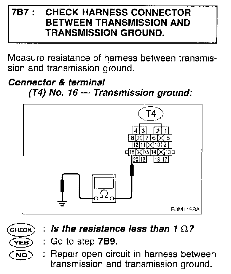 7B7: CHECK HARNESS CONNECTOR BETWEEN TRANSMISSION AND TRANSMISSION GROUND.