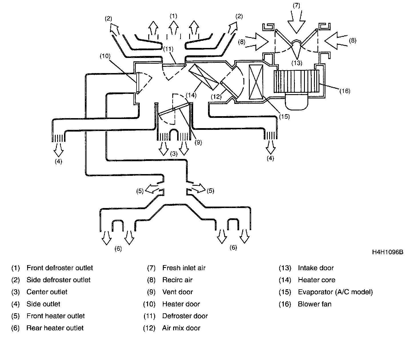 All models are equipped with the front side window defroster, and all models are further equipped with the rear heater duct.