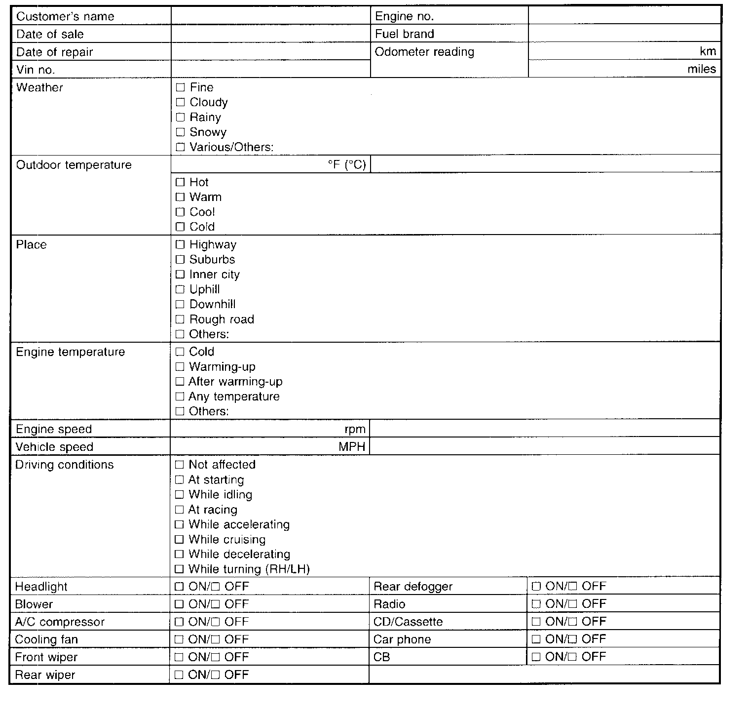 NOTE: Use copies of this page for interviewing customers.