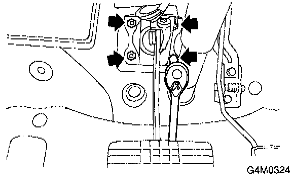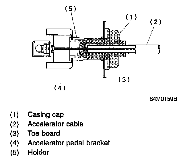 7) Remove accelerator pedal connecting bolt from accelerator pedal bracket.