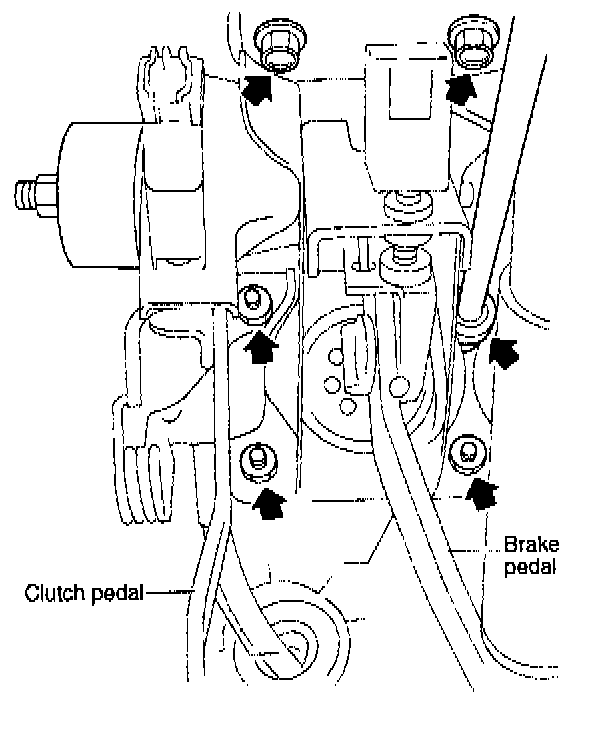 4) Remove two bolts and four nuts which secure brake pedal to pedal.