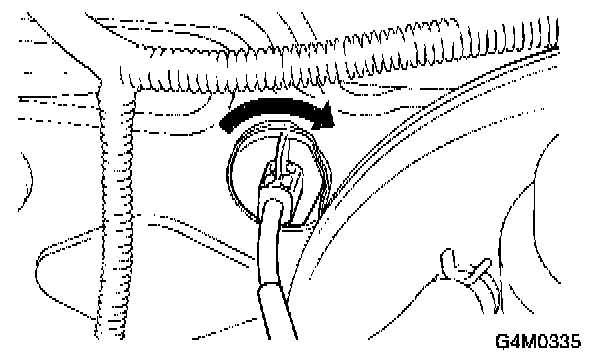 5) Working inside engine compartment, remove casing cap out of the toe board by turning it clockwise.