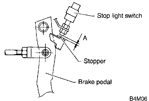 3) Measure the clearance between threaded end of stop light switch and stopper. If it is not in specified value, adjust it by adjusting position of stop light switch.