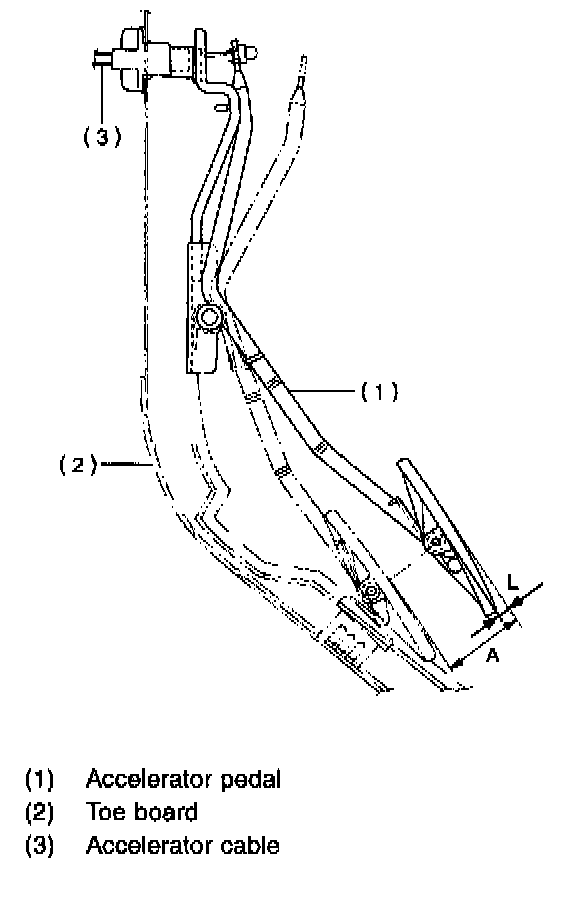 Check pedal stroke and free play by operating accelerator pedal by hand. If it is not within specified value, adjust it by turning nut connecting accelerator cable to throttle body.