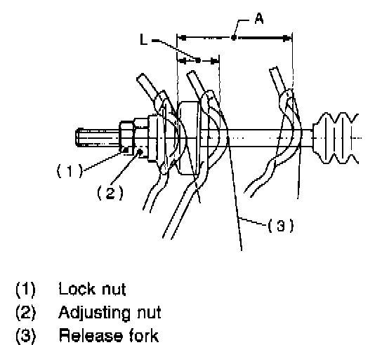 2) If it is not in specified value, adjust it by turning adjusting nut on engine side end of clutch cable.