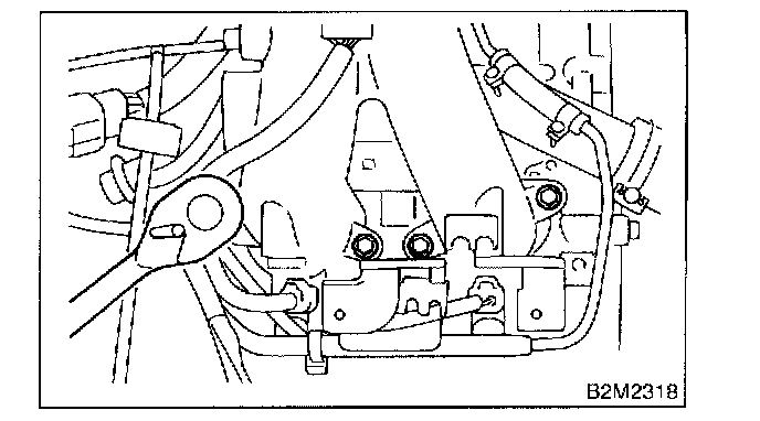4. Remove bolts which secure power steering pipe brackets to intake manifold.