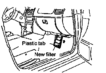 3. Insert a new filter with the plastic tab facing forward.