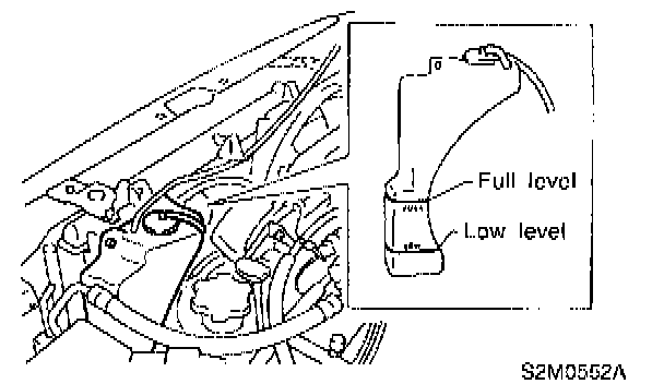 6) If engine coolant level drops from upper level of reservoir tank, add engine coolant to upper level.