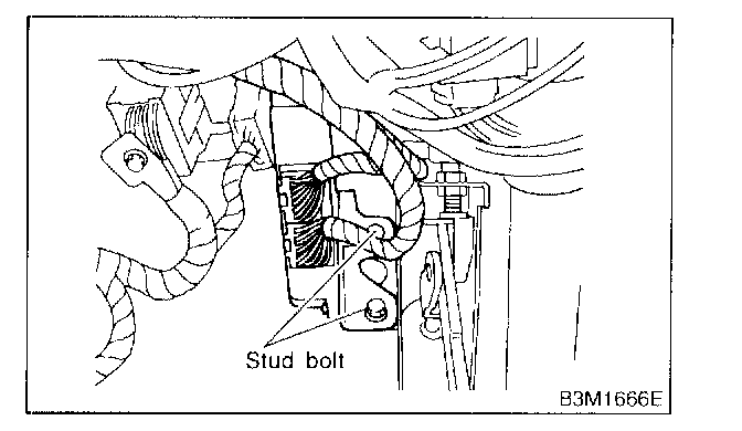 7. Use ECM mounting stud bolts at the body head rounding point when measuring voltage and resistance inside the passenger compartment.