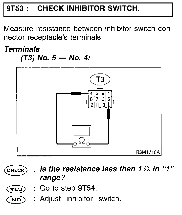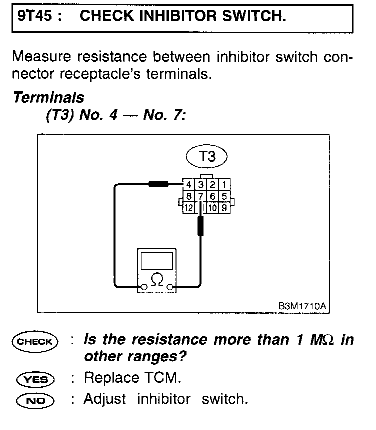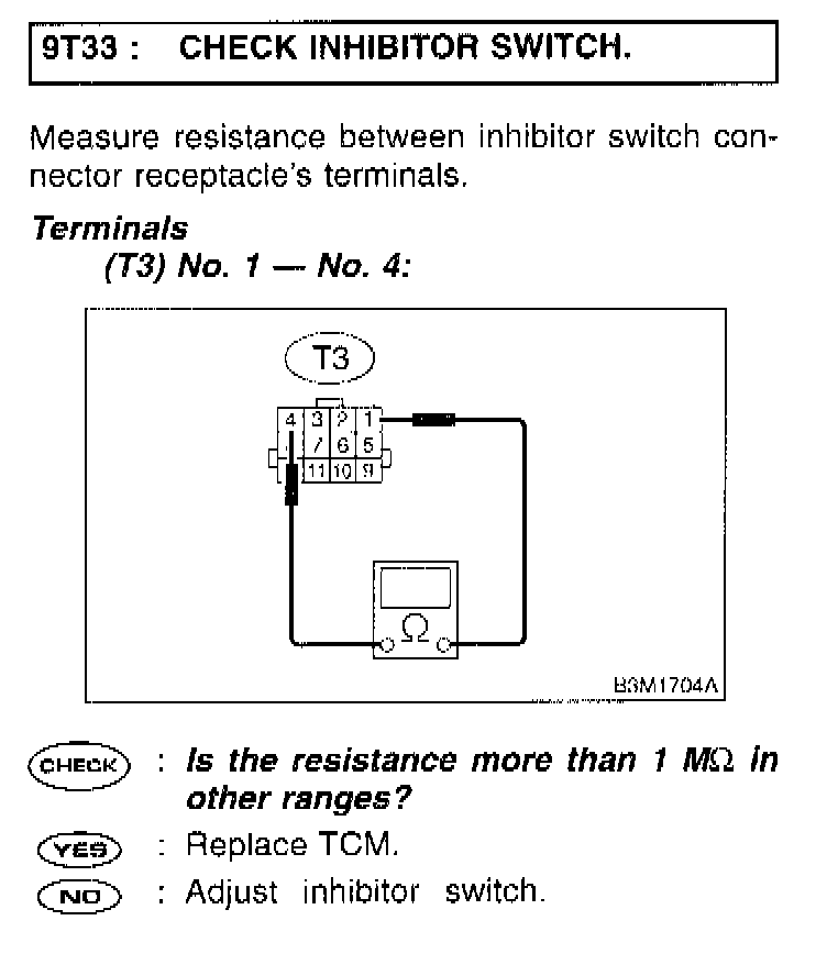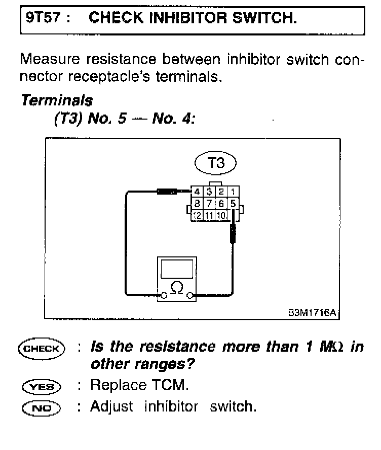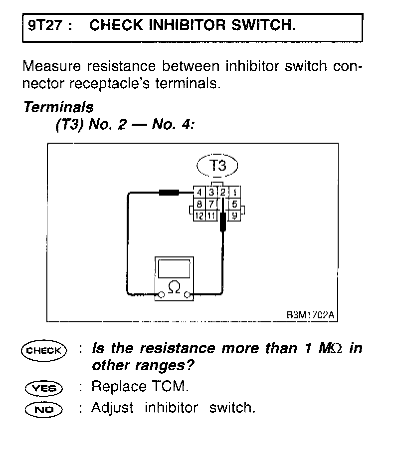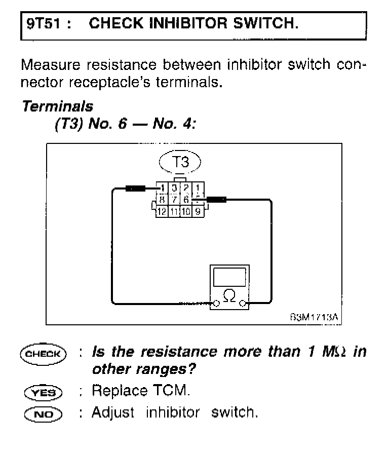 9T38: CHECK HARNESS CONNECTOR BETWEEN TCM AND INHIBITOR SWITCH.