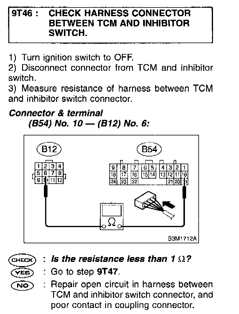 9T46: CHECK HARNESS CONNECTOR BETWEEN TCM AND INHIBITOR SWITCH.