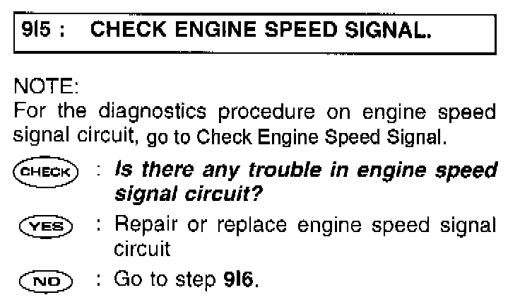 9I5: CHECK ENGINE SPEED SIGNAL.