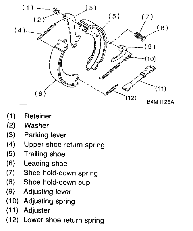 5. When the shoe return spring tension is excessively weakened, replace it, taking care to identify upper and lower springs.