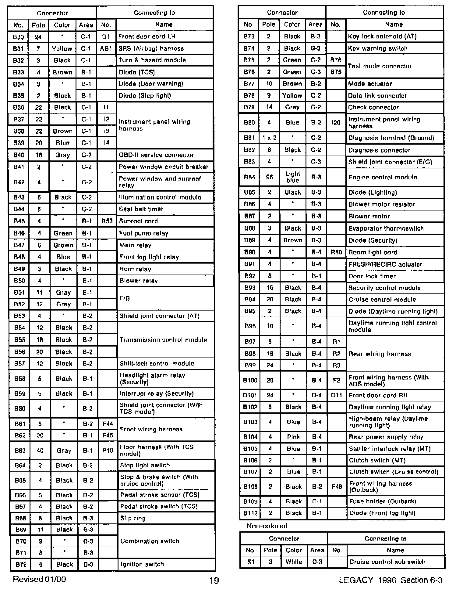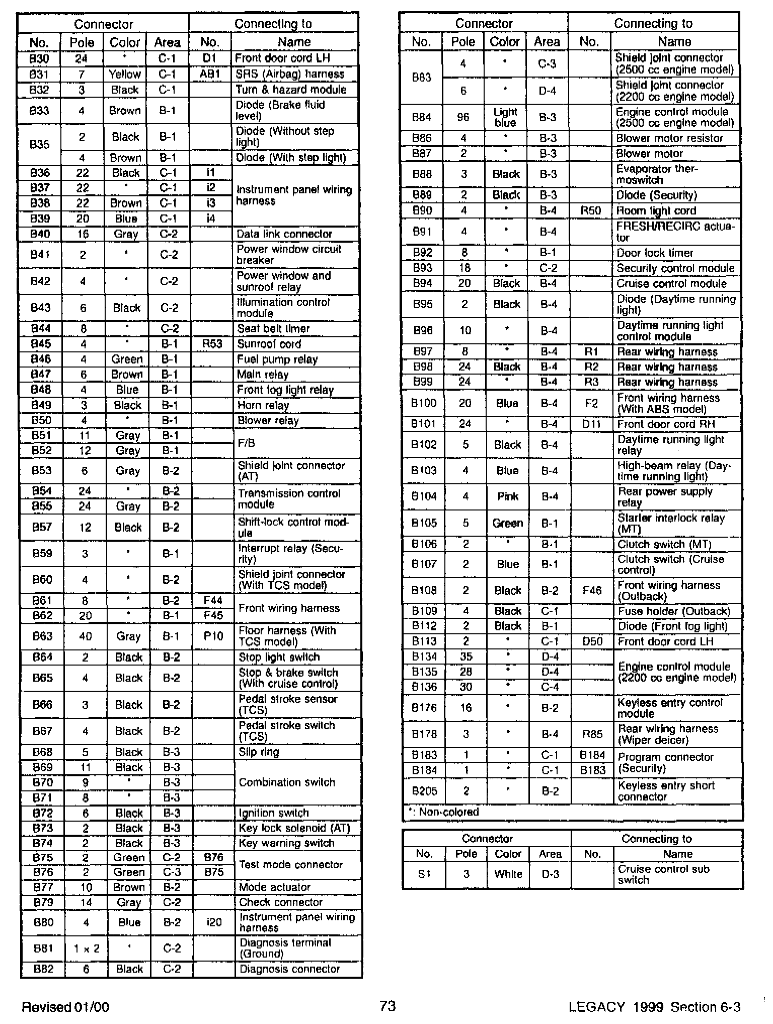 These pages are revised from your 2000 Legacy Service Manuals.