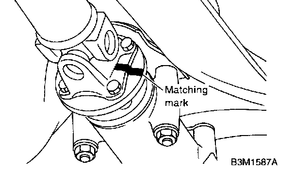 NOTE: Align matching marks on propeller shaft and rear differential coupling.