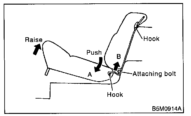 4. Lift rear seat backrest in direction "B" until it is released.