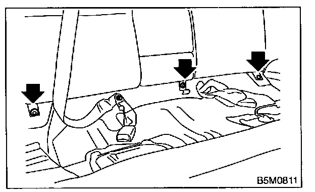 3. Remove bolts securing lower portion of backrest and then open the center trunk through lid.