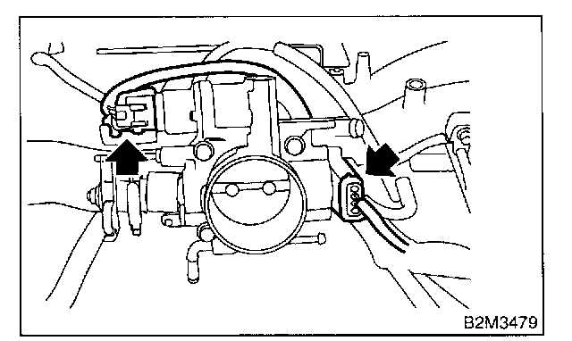 6. Disconnect connectors from throttle position sensor and idle air control solenoid valve.