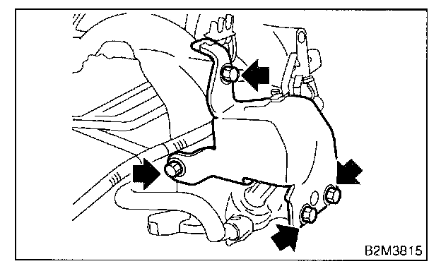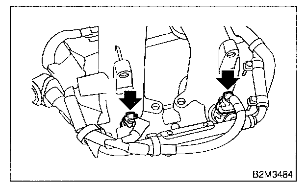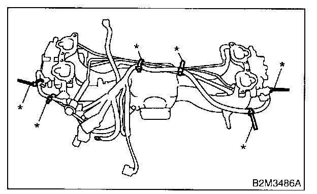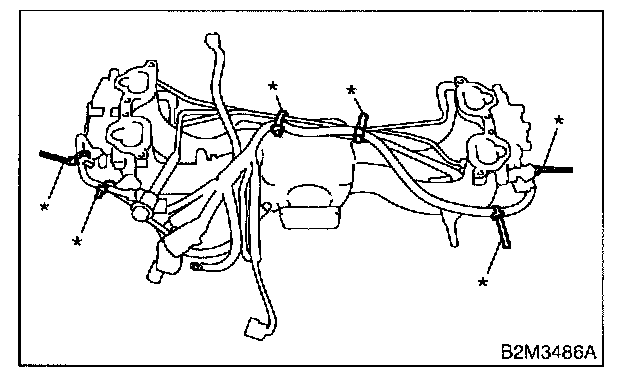 19. Remove harness bands (*) which hold engine harness onto intake manifold.
